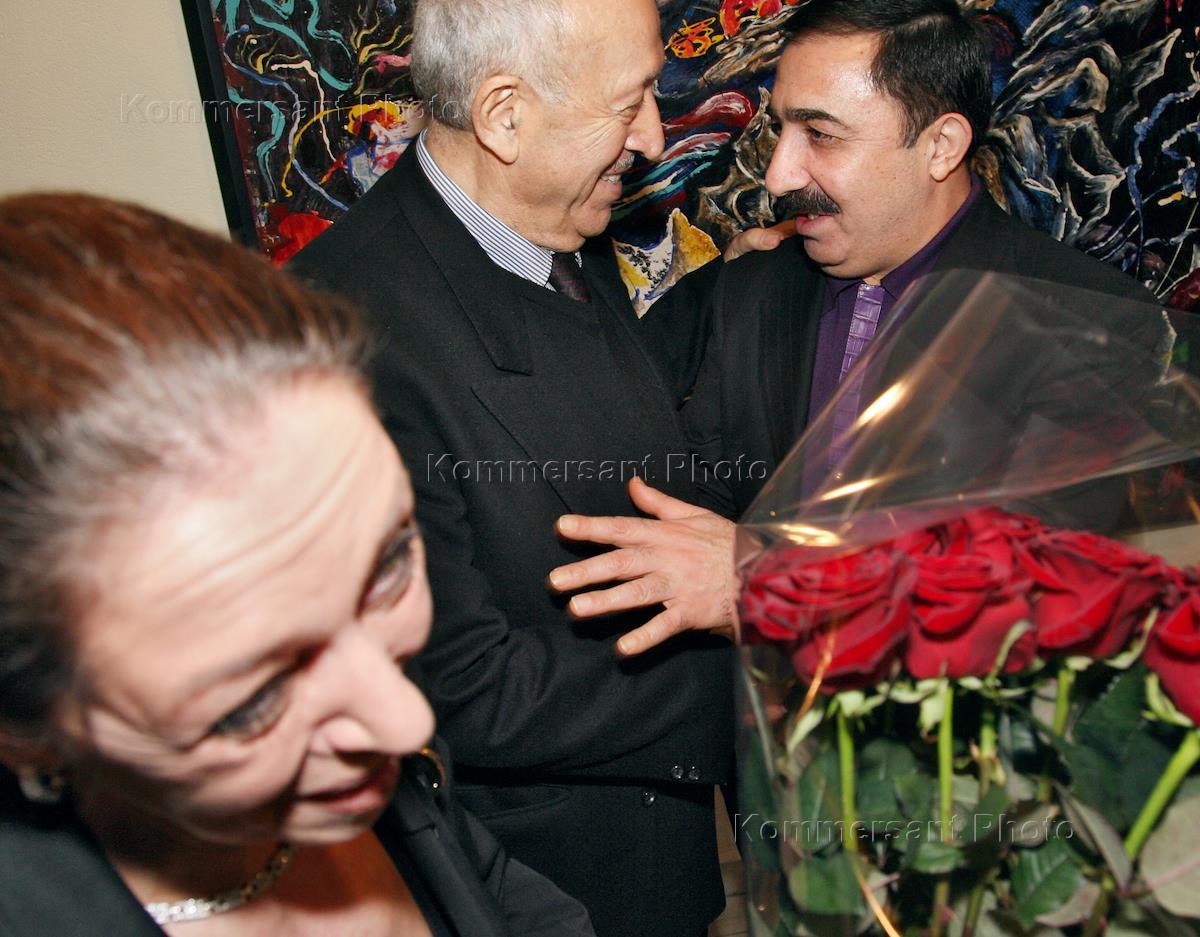 Президент Российской Академии художеств Зураб Церетели (слева) и чрезвычайный и полномочный посол Азербайджана в России, композитор Полад Бюльбюль оглы (в центре) на ужине в честь открытия выставки вице-президента Российской академии художеств Таира Салахова (справа), приуроченной к его 80-летнему юбилею. Ужин прошел в посольстве Азербайджана.