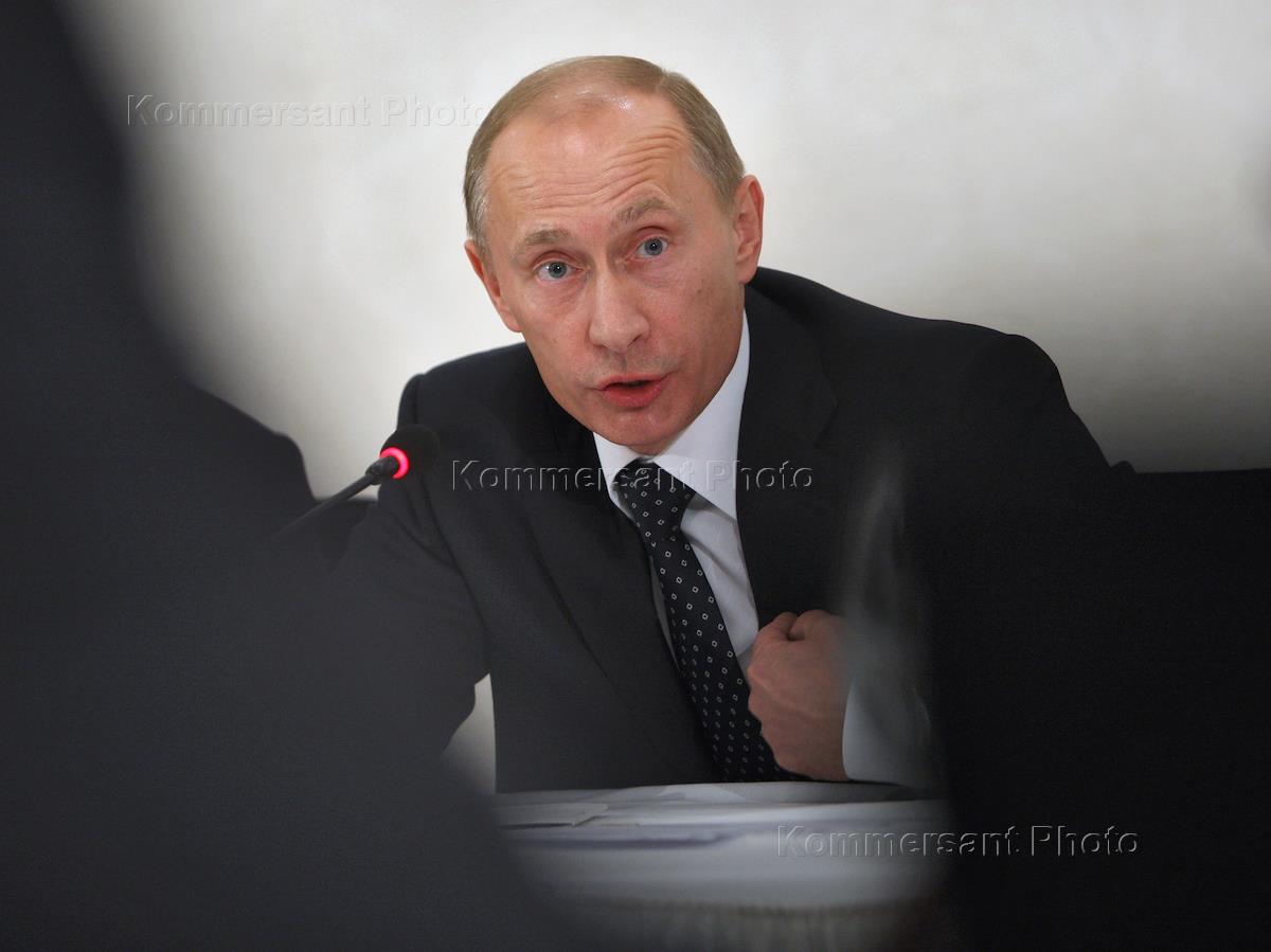 Председатель правительства России Владимир Путин (в центре) во время встречи с главными редакторами германских СМИ в Дрездене.
