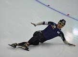 Чемпионат мира по конькобежному спорту. Корейский конькобежец Кью-Хьюк Ли (слева лежит) и финский конькобежец Пекка Коскела (справа) во время соревнований на спринтерских дистанциях. Соревнования прошли в спортивном комплексе (СК) "Крылатское".