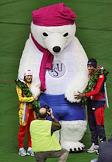 Чемпионат мира по конькобежному спорту. Победители соревнований на спринтерских дистанциях слева направо: немецкая спортсменка Дженни Вольф (серебро) и китайские спортсменки Ван Бэйсин (золото), Ю Цзин (бронза) во время награждения. Соревнования прошли в спортивном комплексе (СК) "Крылатское".