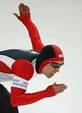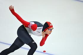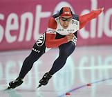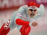 Чемпионат мира по конькобежному спорту. Корейский конькобежец Кью-Хьюк Ли во время соревнований на спринтерских дистанциях. Соревнования прошли в спортивном комплексе (СК) "Крылатское".