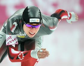Чемпионат мира по конькобежному спорту. Конькобежка Шэннон Ремпель (Канада) во время соревнований на спринтерских дистанциях. Соревнования прошли в спортивном комплексе (СК) "Крылатское".