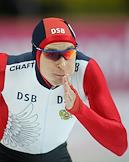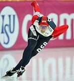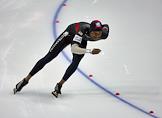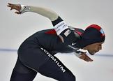 Чемпионат мира по конькобежному спорту. Американский конькобежец Шени Дэвис во время соревнований на спринтерских дистанциях. Соревнования прошли в спортивном комплексе (СК) "Крылатское".