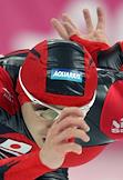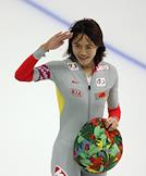 Чемпионат мира по конькобежному спорту. Китайская конькобежка Бейксинг Ванг во время соревнований на спринтерских дистанциях. Соревнования прошли в спортивном комплексе (СК) "Крылатское".