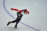 Чемпионат мира по конькобежному спорту. Китайский конькобежец Фенгтонг Ю во время соревнований на спринтерских дистанциях. Соревнования прошли в спортивном комплексе (СК) "Крылатское".