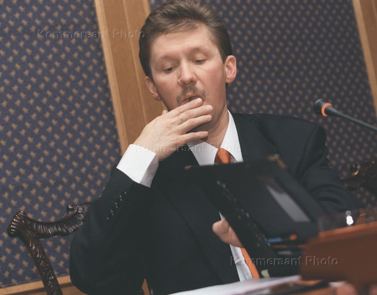 Председатель правления ОАО "Газпром" Алексей Миллер во время пресс-конференции в здании Газпрома.