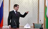 Президент России Дмитрий Медведев во время выступления по итогам переговоров с президентом Узбекистана Исламом Каримовым.