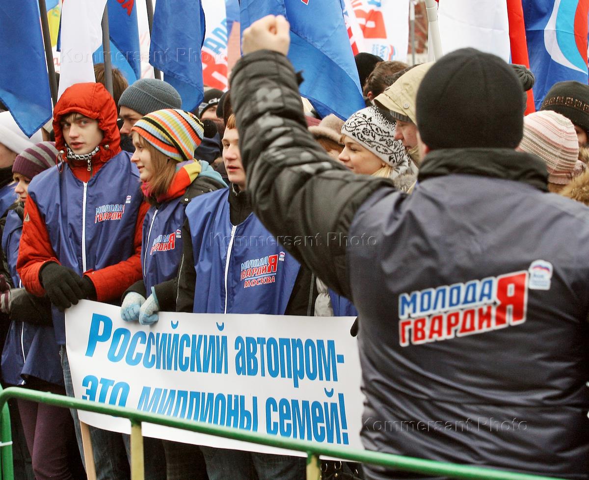 Акция, организованная московским отделением партии "Единая Россия", по поддержке решений правительства России в защиту отечественного автопрома под девизом: "Поддержим Россию - поддержим себя!". Акция прошла у корпуса заводоуправления АМО "ЗИЛ".