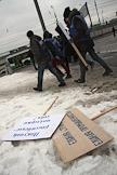 Акция, организованная московским отделением партии "Единая Россия", по поддержке решений правительства России в защиту отечественного автопрома под девизом: "Поддержим Россию - поддержим себя!". Акция прошла у корпуса заводоуправления АМО "ЗИЛ". Дворник убирает улицу после митинга.