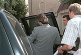 Premiere SV head Sergei Lisovsky takes a seat in his car after leaving publis prosecutor's office.