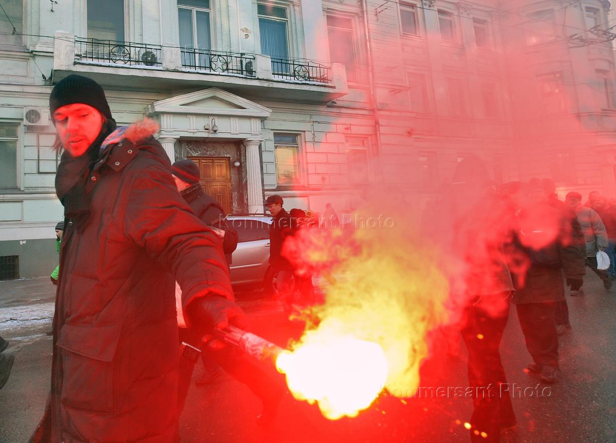 Несанкционированная акция, организованная представителями запрещенной партии Национал-большевиков (НБП), прошла на Триумфальной площади. Арест участников акции.