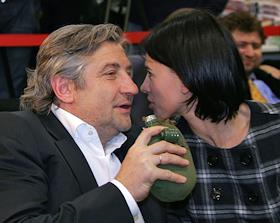 Помощник президента России Аркадий Дворкович (слева) и телеведущая Тина Канделаки (справа) на закрытых пионерских чтениях журнала "Русский пионер" в магазине "Республика" в ТЦ Lotte Plaza.
