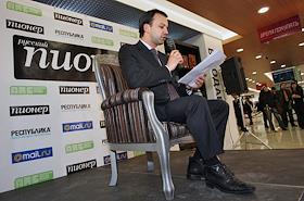 Помощник президента России Аркадий Дворкович на закрытых пионерских чтениях журнала "Русский пионер" в магазине "Республика" в ТЦ Lotte Plaza.