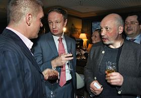 Президент Русского общественного фонда, руководитель Федерального агентства по печати и массовым коммуникациям (ФАПМК) России Михаил Сеславинский (в центре) и руководитель информационного центра правительства России Денис Молчанов (справа) на закрытых пионерских чтениях журнала "Русский пионер" в магазине "Республика" в ТЦ Lotte Plaza.