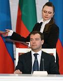 Президент России Дмитрий Медведев во время встречи с президентом Болгарии Георгием Пырвановым в Кремле.