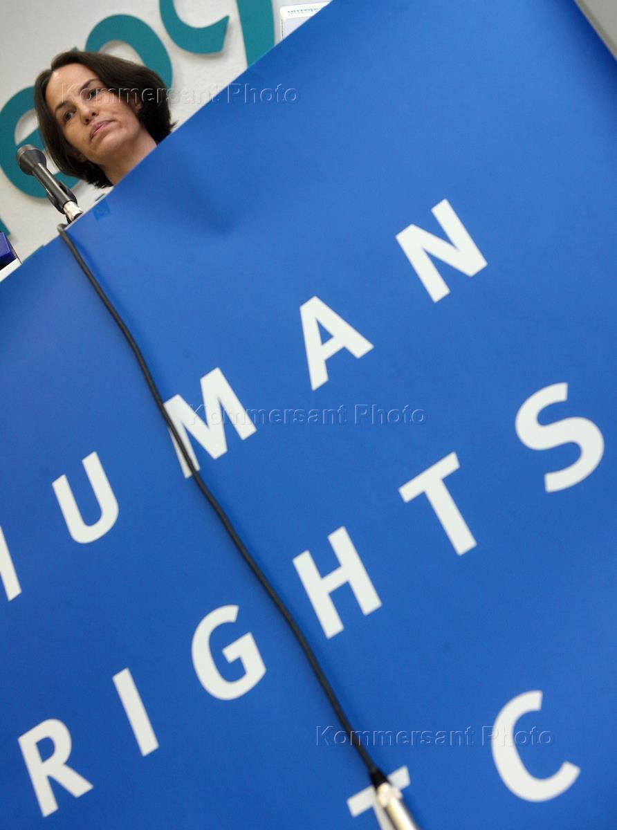 Исследователь отделения международной правозащитной организации Human Rights Watch (HRW) по Европе и Центральной Азии Джейн Бьюкенан во время пресс-конференции представителей организации HRW, посвященной подготовленному HRW новому докладу о положении иностранных трудовых мигрантов в России. Пресс-конференция прошла в центральном офисе агентства "Интерфакс".