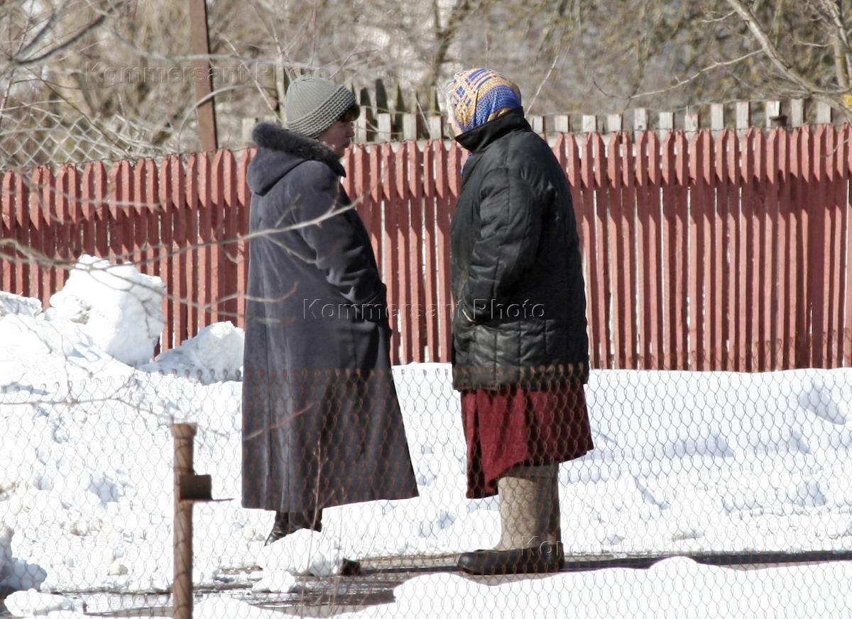Жанровое фото. Женщины разговаривают на сельской улице.