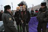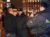 Милиционеры разговаривают с участниками пикета против поправок в 4-ую часть Гражданского Кодекса об авторском праве. Пикет прошел в Новопушкинском сквере.