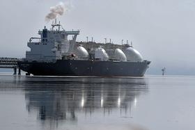 Танкер-газовоз "Гранд Анива", который будет использоваться для перевозки сахалинского сжиженного природного газа. Завод по производству сжиженного природного газа построен в рамках реализации проекта "Сахалин-2".