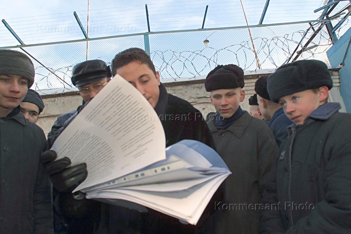 Икшанская воспитательная колония для несовершеннолетних преступников в Дмитровском районе. Член фракции "Единство" в Государственной Думе России Александр Баранников (в центре) во время встречи с заключенными.