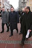 Адвокаты Мурат Мусаев (слева), Саид Арсамирзаев (справа) и подозреваемый в убийстве журналистки Анны Политковской Джабраил Махмудов (второй справа) после окончания заседания Московского окружного военного суда.