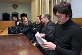 Слева направо: подозреваемые в убийстве журналистки Анны Политковской бывший сотрудник московского УБОПа Сергей Хаджикурбанов, Ибрагим и Джабраил Махмудовы перед началом заседания Московского окружного военного суда.