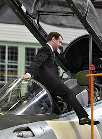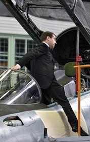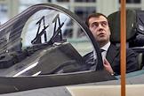 Президент России Дмитрий Медведев во время посещения Иркутского авиационного завода.