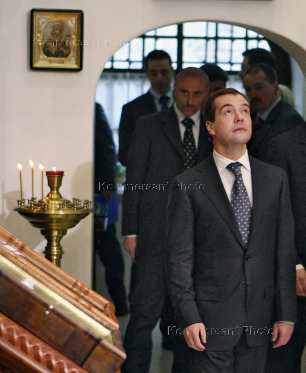 Президент России Дмитрий Медведев во время посещения базилики Святителя Николая Чудотворца.