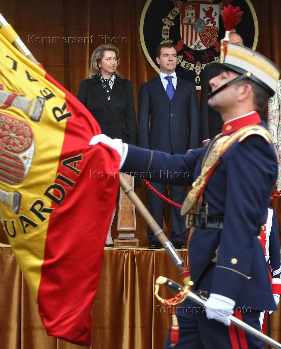 Визит Президента РФ Дмитрия Медведева в Испанию. Во дворце Эль-Пардо состоялась официальная церемония встречи Дмитрия и Светланы Медведевых Королём Испании Хуаном Карлосом I и Королевой Софией. КАСА ДЕ АМЕРИКА. Дмитрий Медведев встретился с ректорами российских, испанских и латиноамериканских университетов. ДВОРЕЦ САРСУЭЛА. Дмитрий и Светлана Медведевы встретились с принцем Фелипе и его супругой принцессой Летицией.