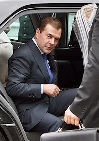 Президент России Дмитрий Медведев перед встречей с королем Испании в официальной королевской резиденции - дворце Сарсуэла.