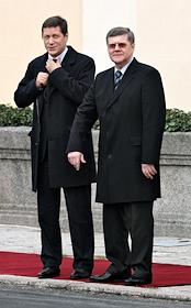 Президент России Дмитрий Медведев (слева) и глава правительства Испании Хосе Луис Родригес Сапатеро (справа) во время встречи во дворце Манклоа.