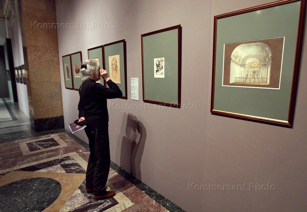Посетитель на церемонии открытия выставки "От Дюрера до Клее. Немецкий, австрийский и швейцарский рисунок XV — XX веков из собрания ГМИИ" в Государственном музее изобразительных искусств (ГМИИ) имени А.С.Пушкина.