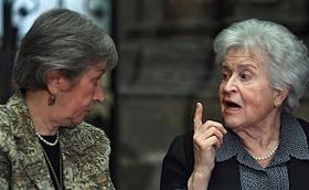 Старший научный сотрудник отдела графики Государственного музея изобразительных искусств (ГМИИ) имени А.С.Пушкина Галина Кислых (слева) и директор ГМИИ имени А.С.Пушкина Ирина Антонова (справа) на церемонии открытия выставки "От Дюрера до Клее. Немецкий, австрийский и швейцарский рисунок XV — XX веков из собрания ГМИИ" в Государственном музее изобразительных искусств (ГМИИ) имени А.С.Пушкина.