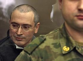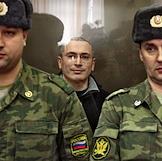 Бывший глава компании "ЮКОС" Михаил Ходорковский (слева) во время предварительных слушаний по второму уголовному делу в Хамовническом районном суде.