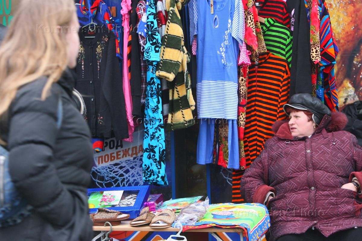Уличная торговля одеждой у станции метро "Красная Пресня".