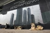 Вход на станцию метро "Международная" и стая спящих дворовых собак.