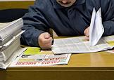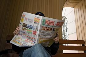 Жанровая фотография. Центр занятости населения. Газета "Работа в Москве" на столе.