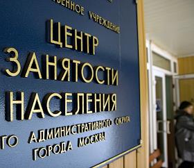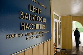 Жанровая фотография. Вывеска Центра занятости населения Южного административного округа (ЮАО) города Москвы на здании Центра.