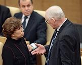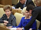 Председатель комитета Государственной думы России по охране здоровья Ольга Борзова (справа) во время очередного думского заседания.