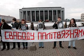 Несанкционированный митинг оппозиционных партий в поддержку политзаключенных прошел на Октябрьской площади.