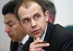 Руководитель Департамента топливно-энергетического хозяйства Москвы Евгений Скляров на пресс-конференции "Урегулирование ситуации на рынке сбыта электроэнергии в Москве". Пресс-конференция прошла в агентстве "Интерфакс".