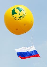 Флаг России на воздушном шаре с рекламой компании "Росагролизинг".