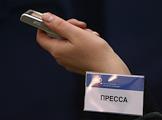 Жанровая фотография. Мобильный телефон в руке и бэйджик "Пресса".