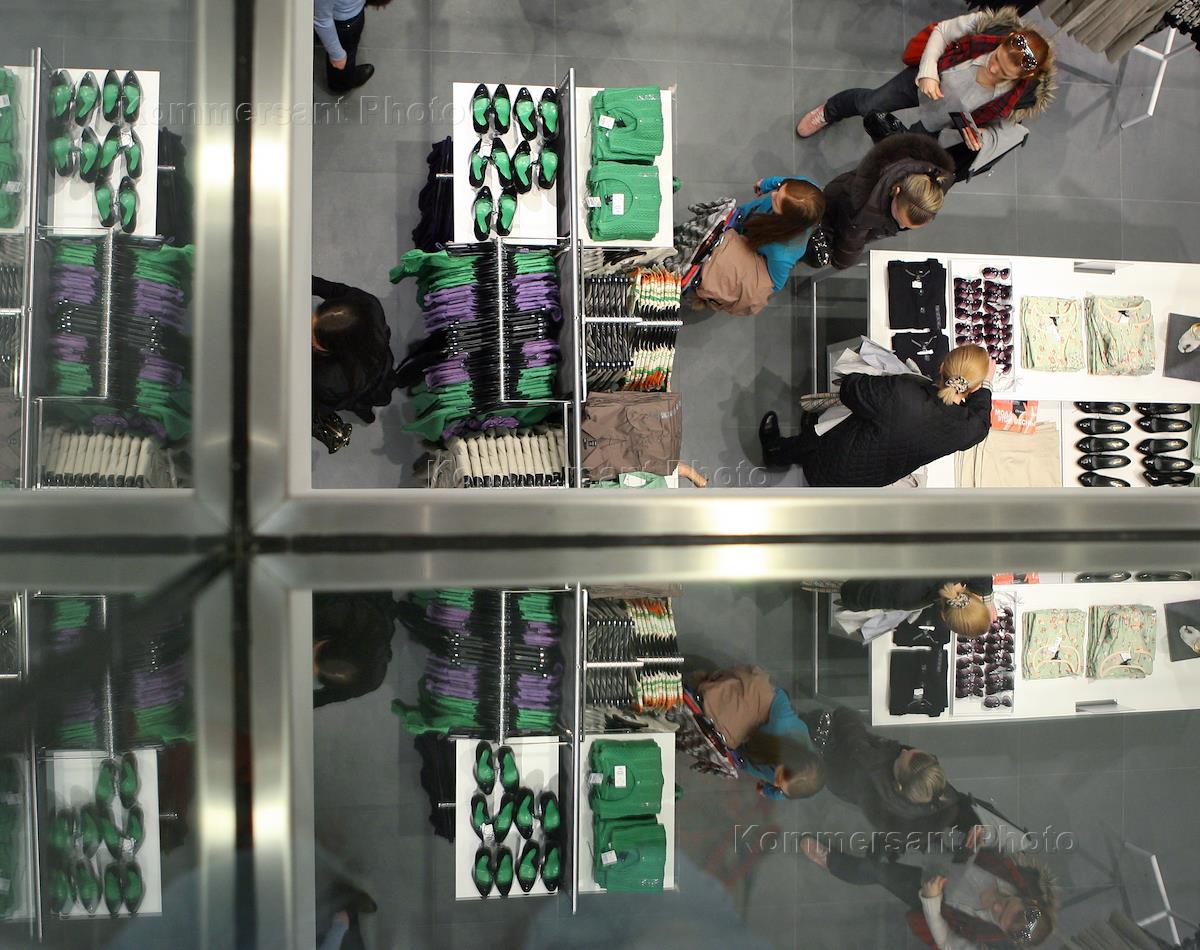 Покупательницы в торговом зале магазина H&M в торгово-развлекательном центре "МЕГА Химки".