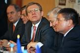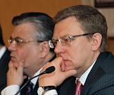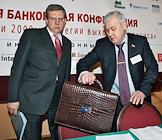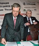 Президент Ассоциации региональных банков России (Ассоциация "Россия") Александр Мурычев (слева) и заместитель председателя правительства России, министр финансов Алексей Кудрин (справа) на XI всероссийской банковской конференции "Банковская система в России 2009: стратегия выхода из кризиса". Конференция прошла в "Президент-отеле".