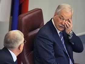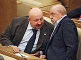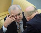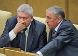Заместитель председателя комиссии Государственной думы России по мандатным вопросам и вопросам депутатской этики Анатолий Губкин (слева) на пленарном заседании Госдумы.