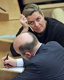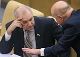 Член комитета Государственной думы России по финансовому рынку Борис Кашин (слева) на пленарном заседании Госдумы.