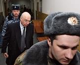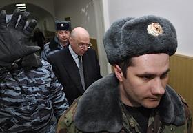Бывший президент холдинговой компании "Восточно-Европейская финансовая корпорация" (ВЕФК) Александр Гительсон (в центре), подозреваемый в хищении и растрате средств, после заседания Басманного районного суда.