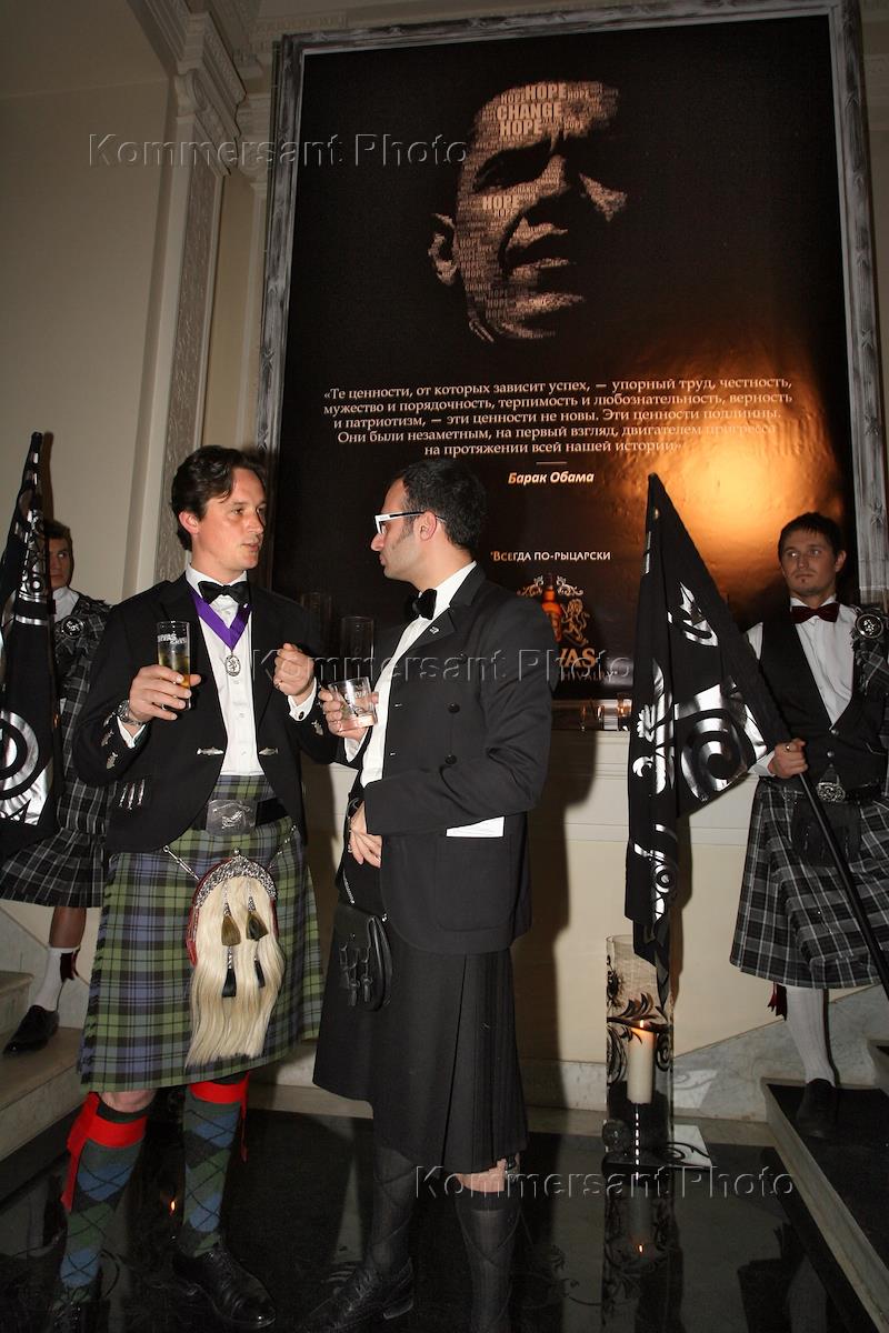 Директор по маркетингу компании "Перно Рикар Русь" Вадим Григорян (слева) и президент управляющей компании "Тройка-Диалог" Павел Теплухин (справа) во время первого заседания движения "Всегда по-рыцарски". Заседание состоялось в особняке Петра Смирнова.