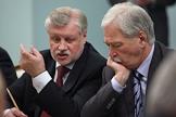 Председатель Совета Федерации России Сергей Миронов (слева) и председатель Государственной думы России Борис Грызлов (справа) во время встречи председателя правительства России Владимира Путина с лидерами политических партий и представителями общественных организаций. Встреча прошла в Доме правительства России.